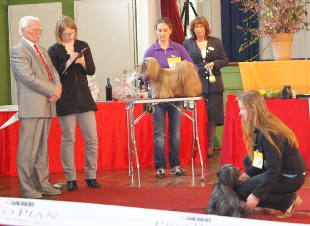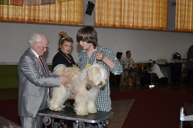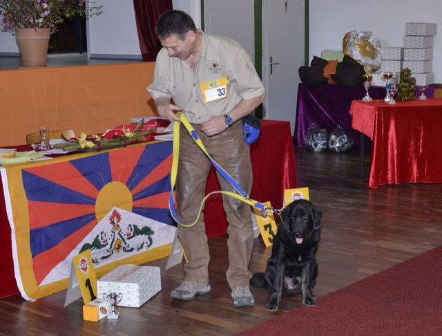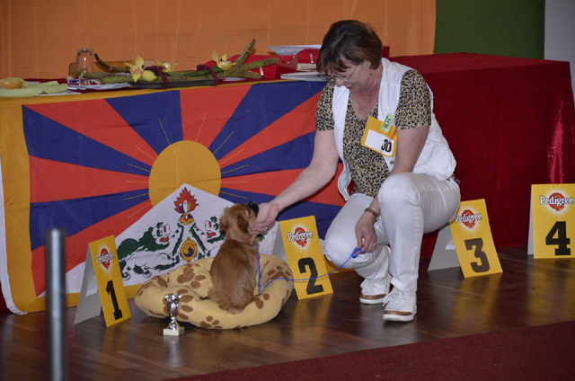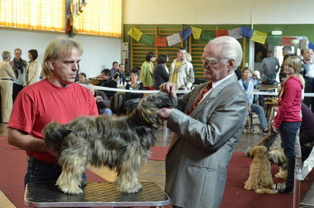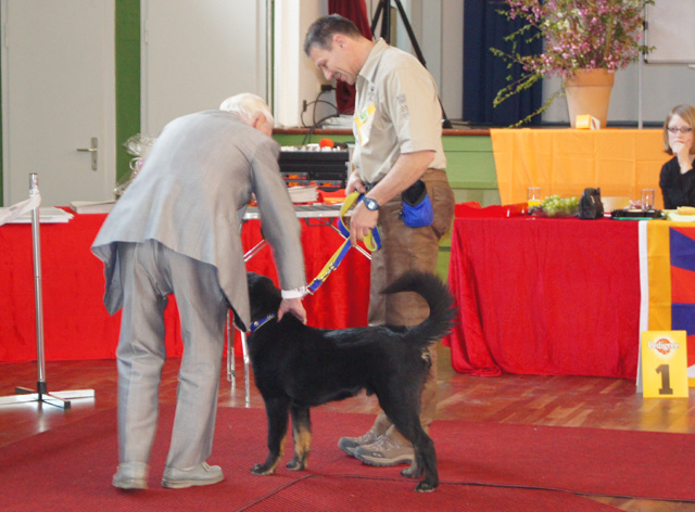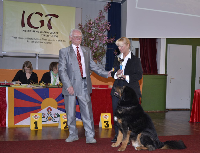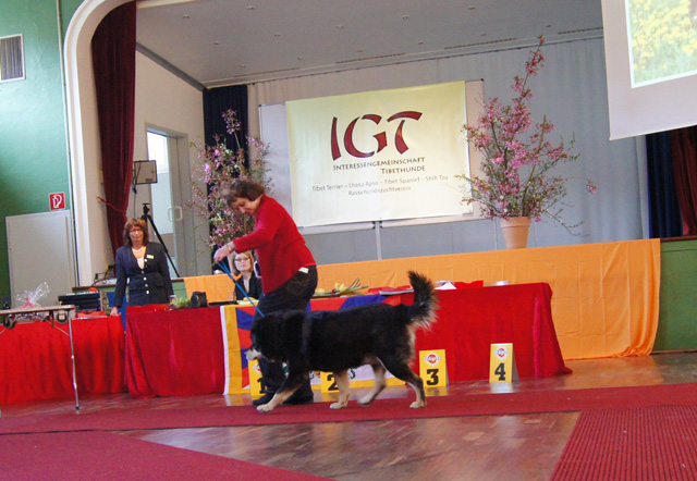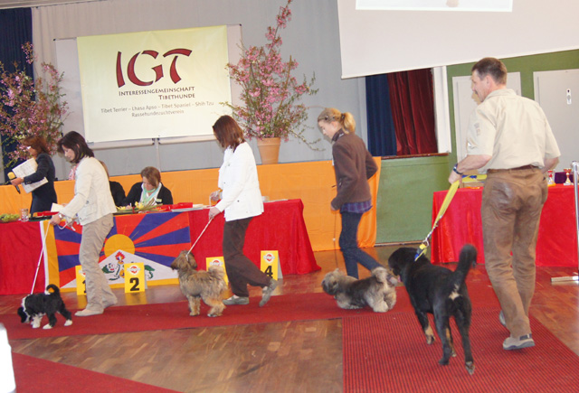 Clubshow des IGT in Hagen Dahl Petrus hatte wohl gut geschlafen, denn das Wetter war geradezu Märchenhaft und lud zu einem Spaziergang und Erfrischungen im Freien ein. Selbst die vielen Hunde hatten gute Laune und waren entspannt und sehr sozial in Umgang miteinander. Neutralität, Freundlichkeit und Fairness, daß ist eine zutreffende Umschreibung für den IGT e.V. (Intressengemeinschaft Tibethunde). Am 16.4.2011 fand die Clubshow des IGT in der Bürgerhalle in Hagen Dahl statt, zu der auch die Mitglieder des FKT eV. (Förderkreis Tibethunde) herzlich eingeladen waren. Da ein international hoch angesehener Richter extra aus England,dem Patronatsland des Standards für den Do Khyi, angereist war, wollten einige Mitglieder des FKT eine Bewertung von Bob Bramton für ihre Do Khyi haben. Die Mitglieder vom FKT wurden von den Mitgliedern des IGT herzlich aufgenommen, und man unterhielt sich in angenehmer Atmosphäre. Die Ausstellungshalle war im tibetischen Look ausgestattet und die roten Teppiche machten den Ring zum Dogwalk, auf dem sich Tibet Spaniel, Lhasa Apsos, Tibet Terrier und Do Khyi von ihrer besten Seite präsentierten. Die Bewertung der Hunde durch den international hoch angesehenen Richter waren ehrlich und korrekt, so daß sich dann auch Hinweise auf die Leibesfülle, oder mangelnde Laune der Probanden im Richterbericht zu finden waren. Die erste Vorsitzende des IGT e.V., Frau Iris Kamp, moderierte die komplette Show und übersetzte als Dolmetscherin auch die Ansprache des Richters. Die Ausrichtung als auch der gesamte Ablauf der Ausstellung waren erstklassig geplant und durchgeführt. An dieser Stelle bedanken sich die Mitglieder des FKT e.V. noch einmal recht herzlich für die Einladung, für die wir uns gerne revangieren werden! Hier nun ein paar Eindrücke der Klubshow.