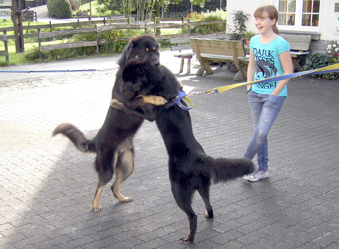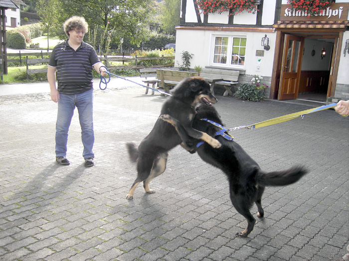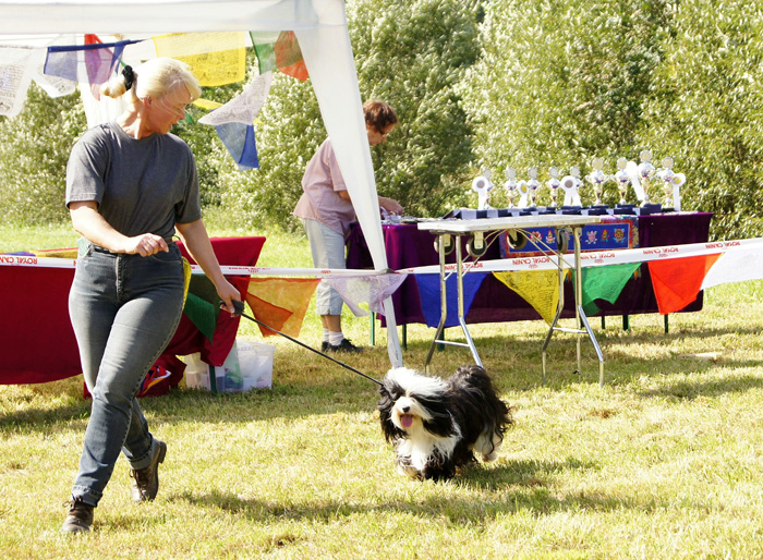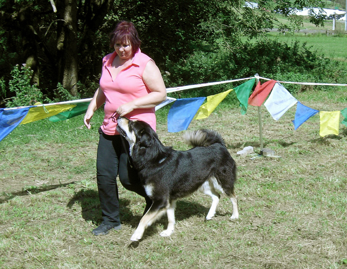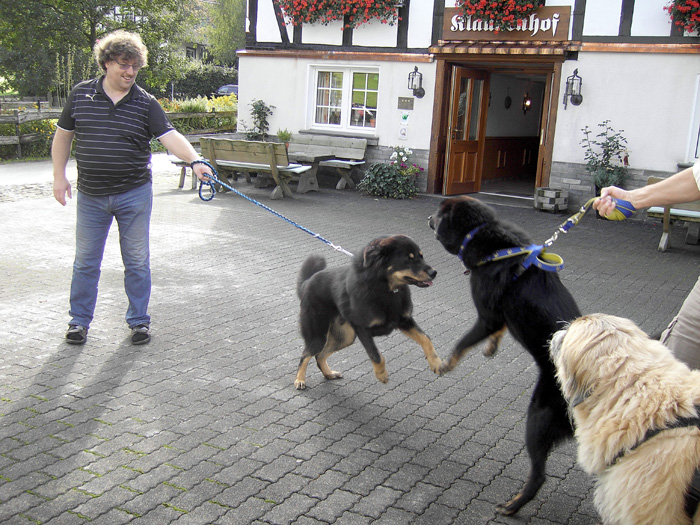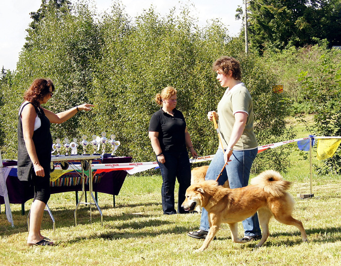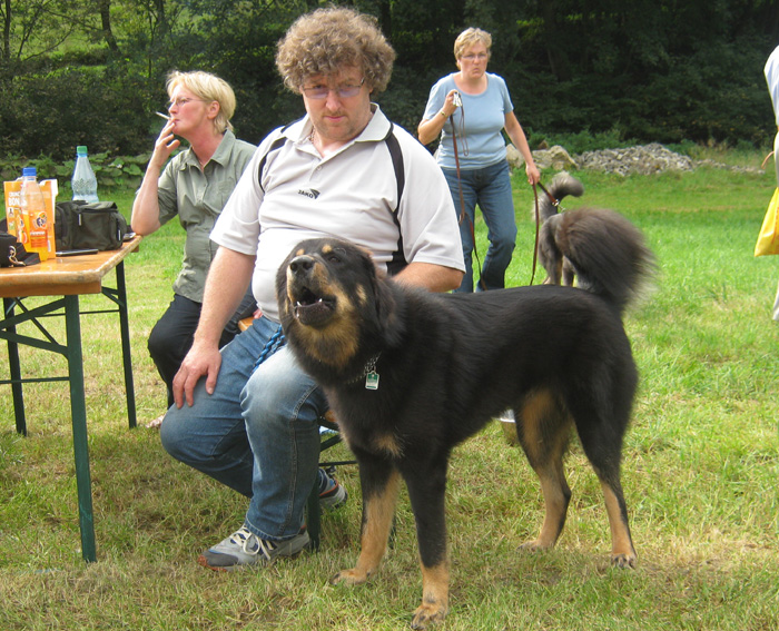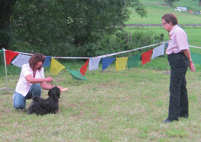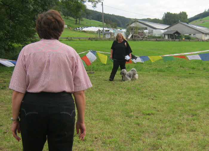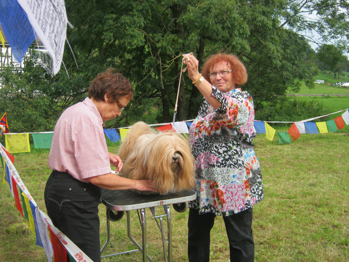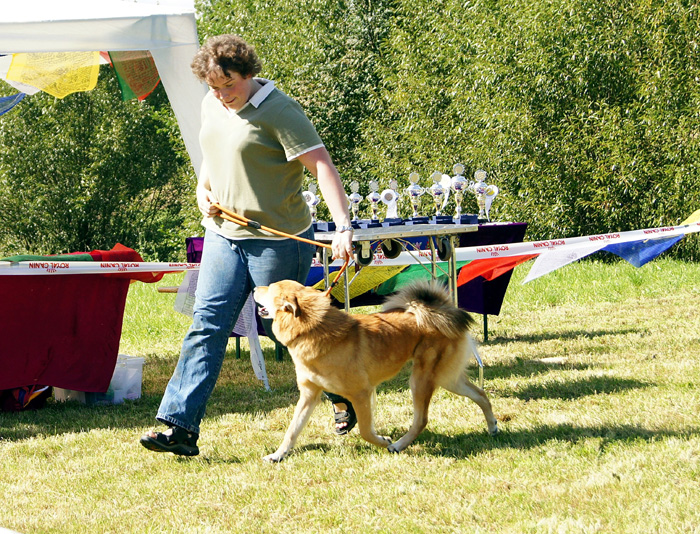 Impressionen aus dem Klaukenhof Die diesjährige Gemeinschaftsclubshow fand im rustikalen Klaukenhof statt und war bis auf die letzten 3 Aussteller - die dann doch noch eine Gratis-Dusche bekamen - von Sonne beschienen. Die extra aus Schweden angereiste Richterin - Frau Anita Bruun - war von der Qualität der Hunde begeistert, insbesondere deshalb, weil z.B. die Do Khyi Zucht in Schweden rückgängig ist. Bevor sie am Sonntag ihre Arbeit aufnahm, hatte sie schon bereits am Samstag Zeit, dem Ringtraining - geleitet vor der 1. Vorsitzenden des IGT e.V. - beizuwohnen, und Mensch und Hund zu beobachten. Abends gabe es dann einen regen Interessenaustausch bei Speis und Trank, der teil bis in die späten Abendstunden andauerte.